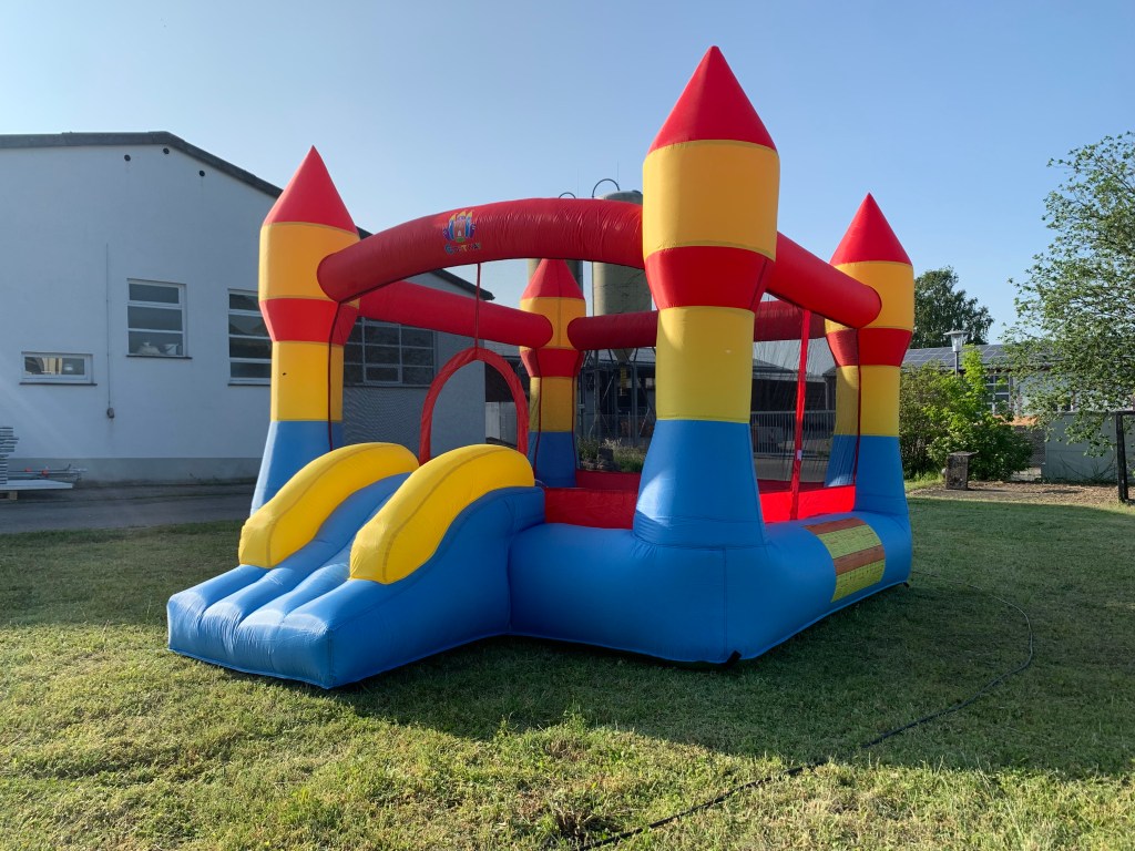 Unser Dauerbrenner Castle hat eine Hüpffläche von 240 cm x 240 cm und kann bis 90 kg belastet werden (max. 2 x 45 kg bzw. 3 x 30 kg). Durch die geschlossenen Seiten ist die Sicherheit gewährleistet und die kleine Rutsche sorgt für zusätzlichen Spaß.